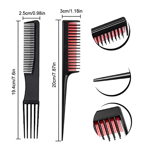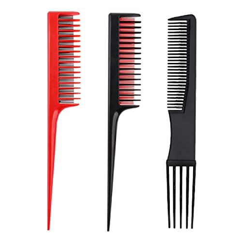 2 pezzi Pettine a collo triplo Parrucchiere Pettine posteriore Pettine a coda di topo per donne Pettine posteriore Radici dei capelli Toupeing Aggiungi volume Styling da sera Nero e rosso