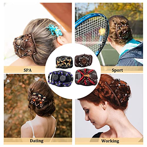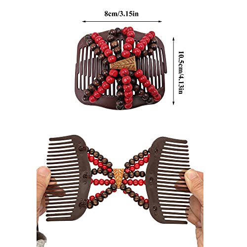 4 Pezzi Pettini Elastici per Capelli con Perline di Legno Doppio Pettine Clip Fermagli per Capelli Elastici Magici Strumenti di Capelli Fai da te per Donne Adatto per Tutte le Acconciature e Texture