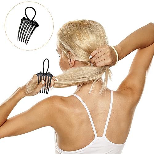 4 Pezzi Pettinini Fermacapelli,Pettinino per Capelli,Lnserti Volume Coda di Cavallo Pettini Pettine per Capelli Soffici Pettine Strumento per Acconciature con Elastico (Nero)