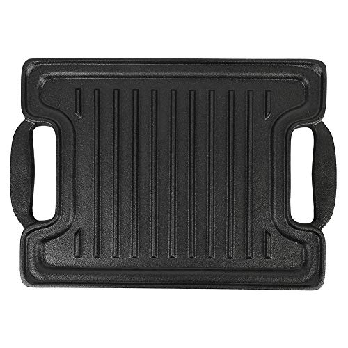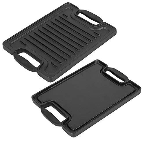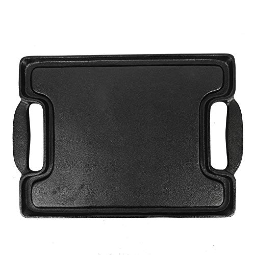 2 Pezzi Piastra in Ghisa per Barbecue, Piastra per Griglia Padella Rettangolare Doppia con Manici, 36 x 25 x 2 cm