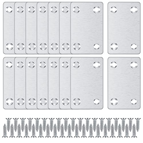 16 Pezzi Piastra Staffa Angolare Piatta in Acciaio Inox, Piastra Acciaio, Piastra di Giunzione Piatta, Piatta Staffa Fissaggio, 38x60 mm Connettore di Riparazione per Sedie Tavoli da Pranzo Letti