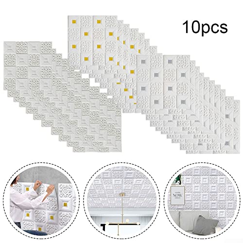 10 pezzi piastrelle autoadesive pannelli 3D, piastrelle 3D intagliate adesivo da parete autoadesivo pannello in schiuma impermeabile per cucina soggiorno camera da letto argento