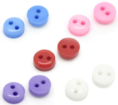 100 pezzi - piccoli bottoni rotondi multicolori (5 colori) da 6 mm. 2 fori. Perfetto per realizzare piccoli vestiti, artigianato in carta, ecc