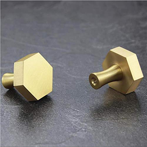 4 Pezzi Piccoli Pomelli in Ottone Puro a Foro Singolo, Maniglia a Forma di Esagonale, Manopola in Ottone con Viti, Maniglie per Mobili Armadio Cassetto, Oro (25mm * 26mm)