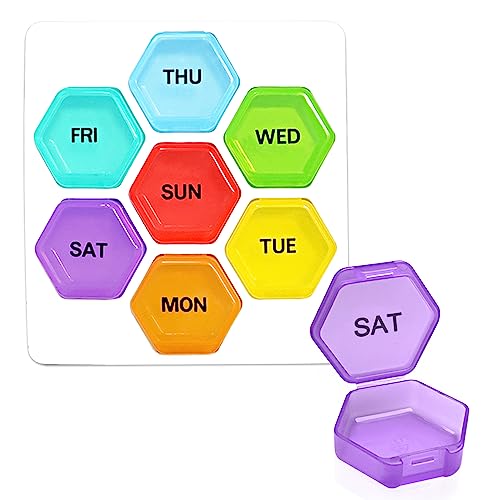 7 pezzi piccolo portapillole, portapillole settimanale portapillole colorato porta tablet con sette scomparti a griglia porta medicinali per vitamine e medicinali