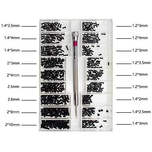 500 Pezzi Piccolo Kit di Viti, Viti per Occhiali, Set di Viti per Computer, Con Cacciavite, Scatola di Plastica, per Occhiali di Riparazione, Laptop, Fotocamer, Orologio, Gioielli, 3 Tipi, 18 Modelli