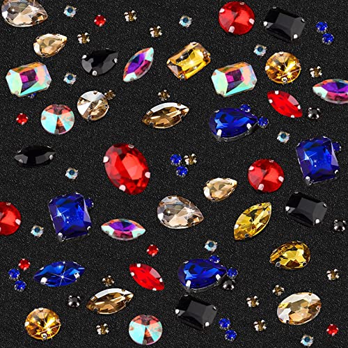 186 Pezzi Pietre da Cucire,Pietre Decorative Cucito,Strass da Cucire,Strass di Vetro,Cristalli Colorati,Applicazioni per Tessuti Strass, Artigianato Fai da te Vestiti Scarpe Borse (Colori Misti)