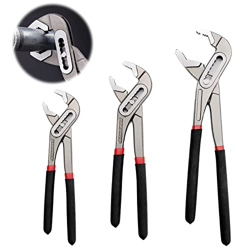 3 Pezzi Pinza per Tubi D'acqua, Nero Set di Pinze Pappagallo Regolabile, (Lunghezza: 200mm, 250mm, 300mm) Pinza a Pappagallo per Idraulico Universale Multifunzione, per Tubi e Dadi (8/10/12 inch)