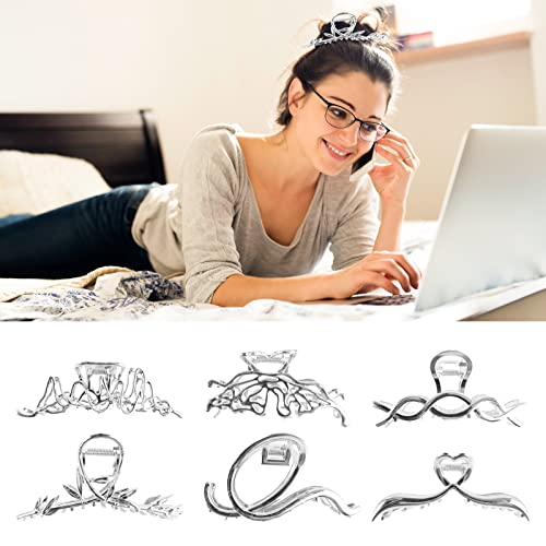 6 Pezzi Pinze per Capelli in Metallo, Mollettone Capelli Donna Grande, Pinze per Capelli Grandi per Capelli Lunghi e Spessi, Pinza Capelli Antiscivolo, Pinze per Capelli Grandi (Argento)