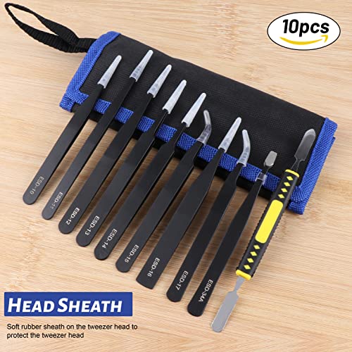 10 Pezzi Pinzette industriali di precisione Set di Pinzette ESD di Precisione Antistatiche per Modellismo, Riparazione Elettronica, Artigianato, Laboratorio, Produzione di Gioielli, ecc