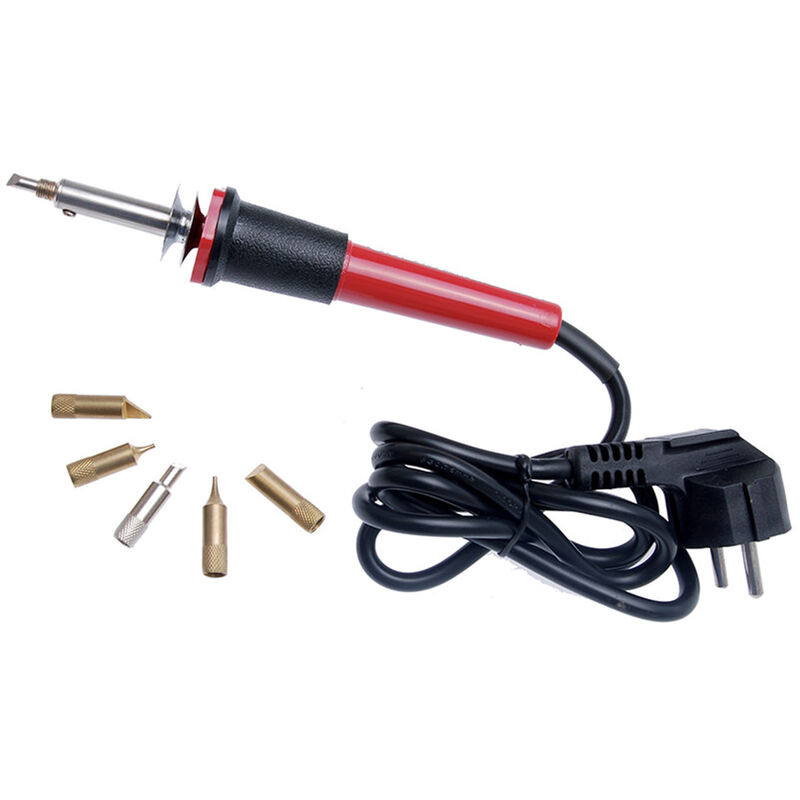 SET PIROGRAFO / SALDATORE ELETTRICO Articolo Descrizione BGS9941 SET 7 PZ PIROGRAFO SALDATORE 1 Caratteristiche • per legno, cuoio e sughero• 1 ferro per legno e saldatura, 30 W• 1 rack di stoccaggio• 1 punta a scalpello, 1 punta corta, 1 punta lunga, 1 punta taglio, 1 punta per ferro per saldare• peso 280 g