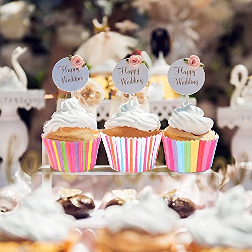 【Pacchetto di valore】 Riceverai 400 pezzi di scatole per muffin arcobaleno di 4 stili, stile arcobaleno, stile mulino a vento, "Facciamo festa" e motivo a torta, i colori colorati ti offrono uno stato d'animo piacevole, abbastanza per soddisfare il tuo uso di cottura