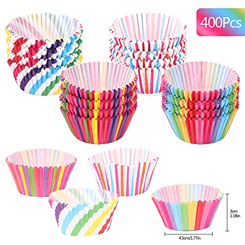 400 pezzi Pirottini per cupcake, Pirottini per muffin arcobaleno Set involucri di carta per cupcake Pirottini Colorati Carta da Forno Pirottini per torte per matrimoni per feste di compleanno(4 stili)