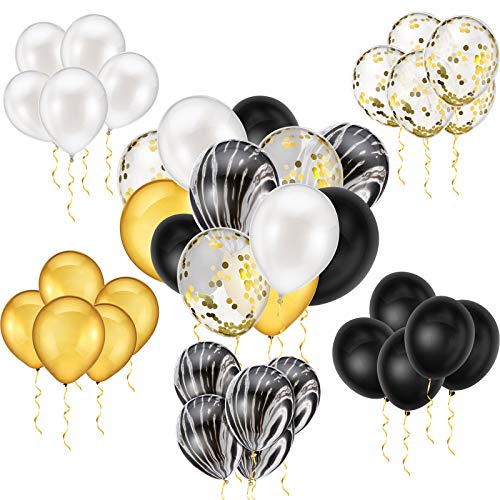 Palloncini in marmo nero da 18 x 12 pollici, palloncini di coriandoli oro precolori 18 x 12 pollici, palloncini in lattice nero da 18 x 12 pollici, palloncini in lattice oro 18 x 12 pollici e palloncini in lattice bianco 18 x 12 pollici