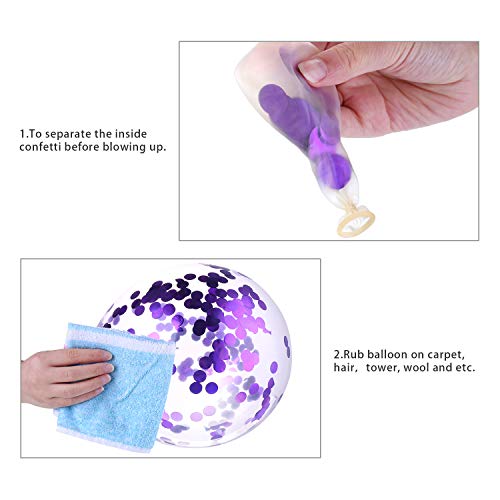 Palloncini viola bianco: pacchetto include 70 pezzi 12 pollici bianco, viola chiaro, palloncini in lattice viola e 20 pezzi 12 pollici palloncini coriandoli viola