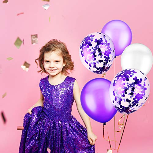 90 Pezzi 12 Pollici Palloncini di Lattice Festa Palloncini Coriandoli Palloncini per Compleanno Matrimonio Vacanza Festa Forniture (Bianco Viola)
