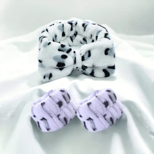 3 Pezzi Polsini Skincare, Fascia Skincare Polsini Spugna per Skincare Fascia Capelli Donna Trucco per Donne Ragazze Sport Yoga Spa Doccia (White Leopard)