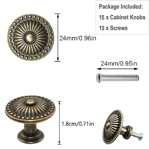 15 Pezzi pomelli in bronzo vintage, Manopole per mobili retrò anticate, maniglie in bronzo retrò per cassetti, Bronzo Vintage Pomelli, Pomello per Mobile Vintage, Con Viti,per Ante o Cassetti