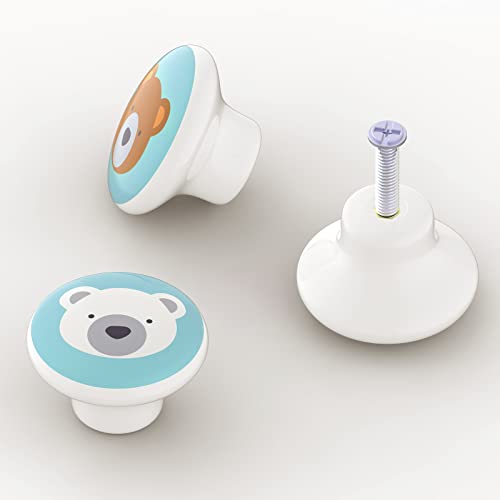 6 Pezzi Pomelli in Ceramica per Bambini Pomello per Mobili in Ceramica Modello Animale Del Fumetto Pomolo Tondo per Mobili con Viti per Maniglie di Porte,Armadi,Cassetti e Credenze