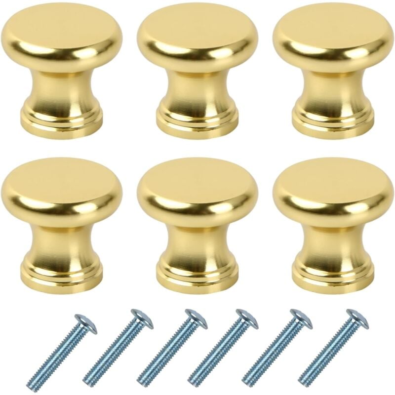 •Set di 6 pomelli per mobili dorati da 25×25×22 mm ciascuno, viti incluse. •Queste maniglie dei cassetti sono realizzate in lega di alluminio di alta qualità, non facile da arrugginire. •Design a fungo rotondo, superficie liscia senza bordi o angoli, molto sicura per i bambini. •Stile semplice per decorare i tuoi mobili, adatto per armadi, cassetti, cassettiere e altro ancora.