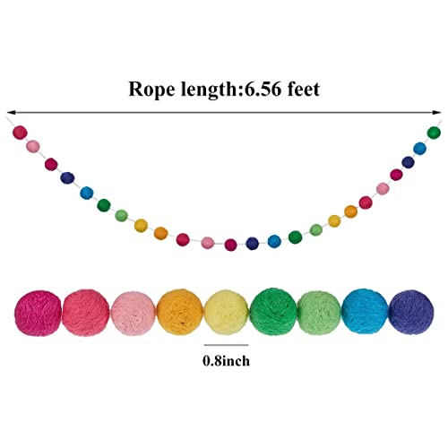 Simpatiche decorazioni murali: la ghirlanda di pom pom ha 35 palline di feltro su di essa, sono di vari colori, come i colori dell'arcobaleno, rendono la tua casa più carina e adorabile, aggiungi più bomboniere