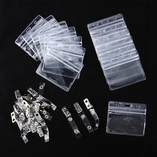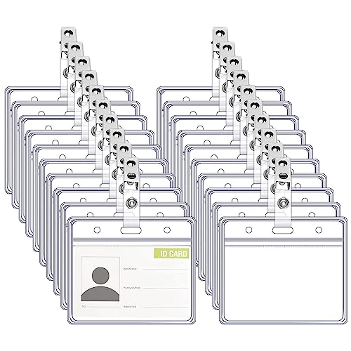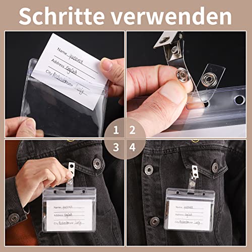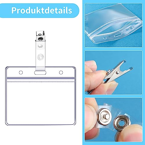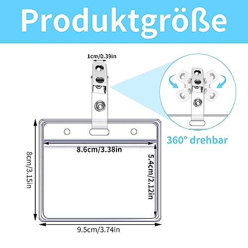 100 Pezzi Porta Badge con Clip, 9 x 8,5 cm Porta Badge Trasparente Porta Cartellino Identificativo Porta Badge Plastica Orizzontale Impermeabile per Carta d'identità Badge Porta Nome