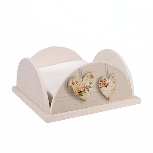 Set 3 pezzi Porta Bicchieri, Porta Tovaglioli e Porta Rotolo in legno shabby ROSE HEART