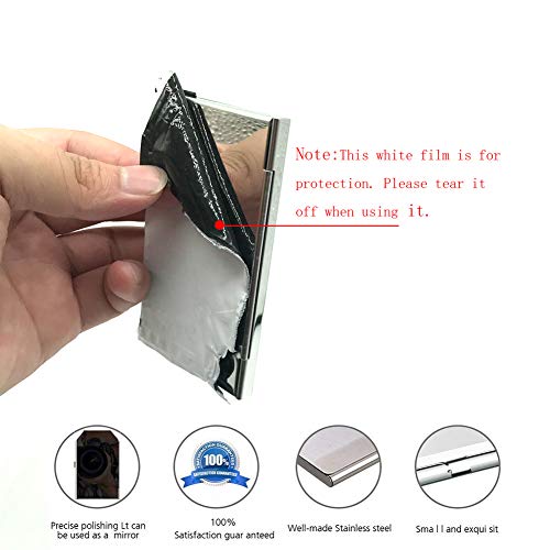 Il porta biglietti da visita in pelle PU può contenere circa 10-15 biglietti da visita e la custodia in acciaio inossidabile può contenere circa 10-12 carte.La custodia in acciaio inossidabile ha una pellicola protettiva in plastica trasparente sulla superficie, si prega di strapparla prima dell'uso.