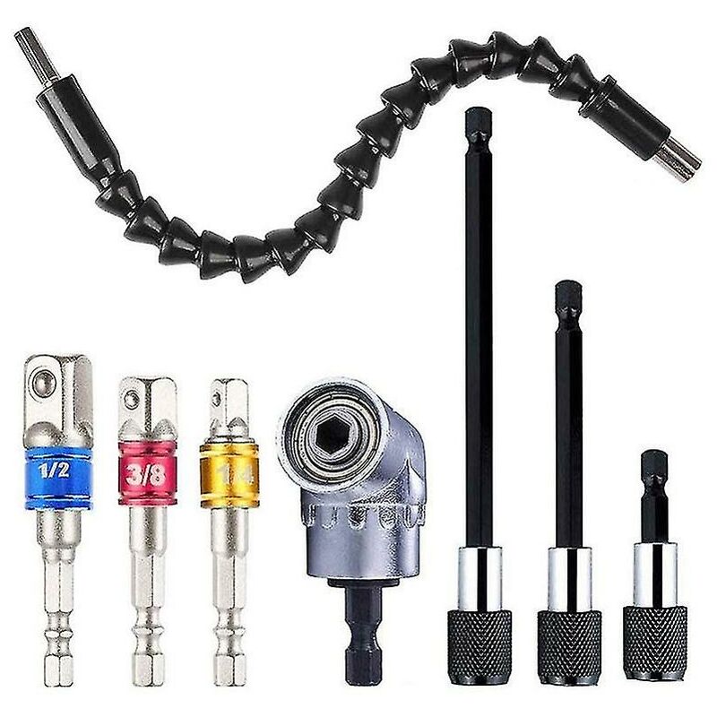 Include 4 diversi strumenti più utili, utilizzati nell'installazione di cacciavite pneumatico, cacciavite elettrico, trapano pneumatico, cacciavite manuale e altre installazioni per l'estensione dell'angolo di 105 gradi dello strumento esagonale che è possibile utilizzare in luoghi difficili da raggiungere. Strumenti di grandi dimensioni per chiave inglese e possono essere collegati al trapano. L'albero di trasmissione esagonale da 1/4 di pollice è a cambio rapido e adatto alla maggior parte dei trapani elettrici e dei mandrini pilota. Il set di 3 barre di prolunga per cacciavite esagonale è progettato per soddisfare una varietà di esigenze. Si adatta perfettamente e saldamente al mandrino o al cacciavite a mano. Composto dalle dimensioni delle punte più comuni da 1/4 di pollice, 3/8 di pollice e 1/2 pollice, modificando la dimensione dei gambi. Offre versatilità e praticità indipendentemente dallo strumento che scegli di utilizzare. Attacco per punta con codolo esagonale da 1/4 di