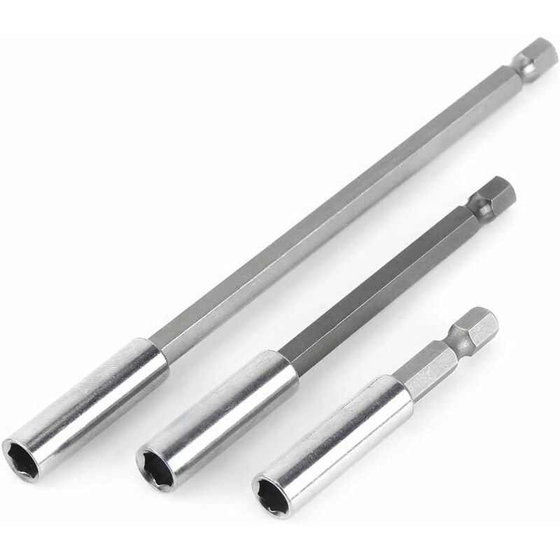 Robusto e duraturo? Queste prolunghe per punte da trapano sono realizzate in acciaio al carbonio di alta qualità e acciaio al cromo vanadio con una struttura robusta per la massima durata e una struttura resistente per un uso duraturo. ?Robusto e durevole? Queste prolunghe per punte da trapano sono realizzate in acciaio al carbonio di alta qualità e acciaio al cromo vanadio con una struttura robusta per la massima durata e una struttura resistente per un uso duraturo. ?Ottima compatibilità? È dotato di un codolo esagonale universale da 1/4" e di un esagono femmina da 1/4" che si adatta alla maggior parte delle prolunghe per trapani, nonché delle prolunghe per punte per avvitatori elettrici e pneumatici. ?Leggero e portatile? Le dimensioni ridotte consentono di estendere la punta in qualsiasi posizione per completare qualsiasi lavoro e può essere integrata in molti kit. ?Flessibile nell'uso? La testina di taglio è magnetica, può essere collegata o scollegata