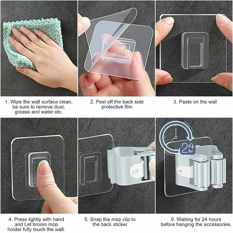 Nuovo design: design estensibile, scope e mop facili da organizzare con una robusta clip a molla. Tiene gli oggetti saldamente e rilascia facilmente, con proprietà ad alta viscosità e durata per evitare che il mop e la scopa cadano. Materiali: ABS + PVC + gomma - Dimensioni: 6 x 6 x 5,5 cm. Facile da installare: non è necessario praticare fori, strappare lo strato protettivo sul retro e incollarlo nella posizione desiderata. (deve essere una superficie liscia e asciutta, come ceramica, superficie metallica, vetri, ecc.) Ben fatto in 1 minuto, forte e robusto. Carica un peso fino a 11 libbre. Consigliato per lasciarlo 24 ore prima di appendere qualsiasi oggetto. Autoregolabile: il design dell'ingranaggio a petalo del morsetto per scopa consente di bloccare vari oggetti con un diametro compreso tra 2,0 cm e 3,5 cm . Design estensibile, scope e mop facili da organizzare con una robusta clip a molla e rilascio facile. Ampia applicazione: le barre per scopa sono adatte a tutte le superfici