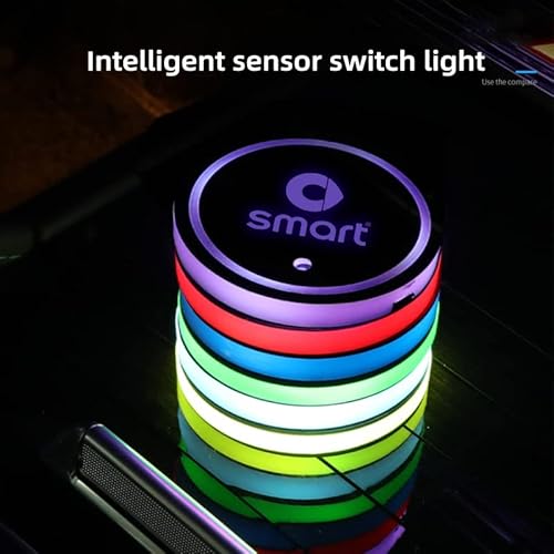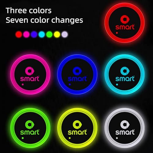 2 Pezzi LED Portabicchieri Luci, LED Sottobicchieri per Auto con 7 Colori USB Ricarica LED Tappetino per Tazza per Smart Fortwo Forfour 453 451 450 Decorazione di Interni Luce Atmosfera