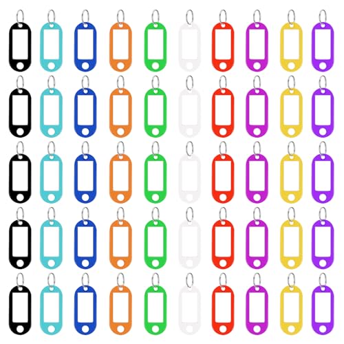 50 Pezzi Portachiavi, Targhette Portachiavi Iscrivibili, Targhette Portachiavi Plastica Scrivibile con Etichetta Per Contrassegnare più Oggetti come Chiavi,Valigie,Animali Domestici(10 colori)