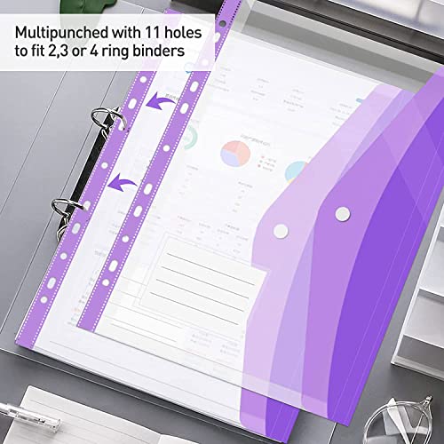 30 Pezzi Portafogli A4 Cartelle in Plastica,A4 Tasche Perforate Espandibili,Cartelline Portadocumenti Trasparenti,con Bottoni Automatici ed Etichetteper Etichette per Scuola e Ufficio