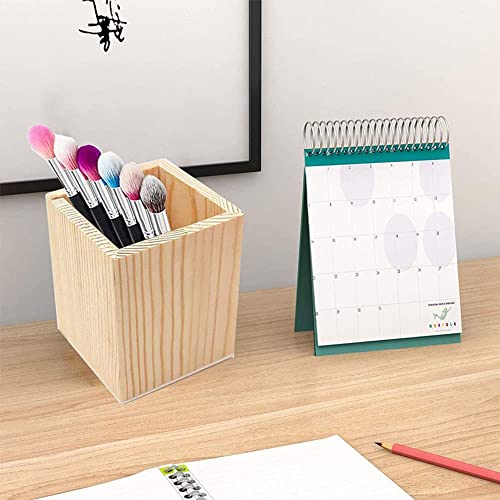 2 Pezzi Portamatite, Portapenne in Legno, Portapenne Quadrati, Portapenne Rotondo, Tazza della Matita Penna, per Riporre Penne, Matite, Pennelli per il Trucco e Piccoli Oggetti