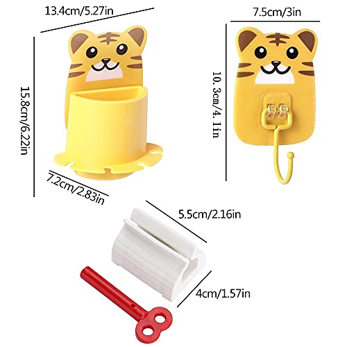 2 Pezzi Portaspazzolino per Bambini, Spremi Dentifricio, Portaspazzolino Adesivo, Portaspazzolino a Parete, 2 Ganci Adesivi e 2 Spremi Dentifricio, Adatto per Bagno, Casa, Detergente per Il Viso