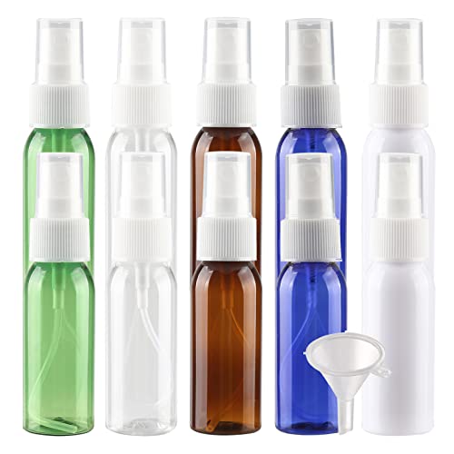 ✔【La confezione include】- 10 pezzi da 30 ml bottigliette spray vuote ( 2 pezzi di ogni colore: trasparente, bianco, verde, blu, marrone) con 2 pezzo imbuto in plastica.