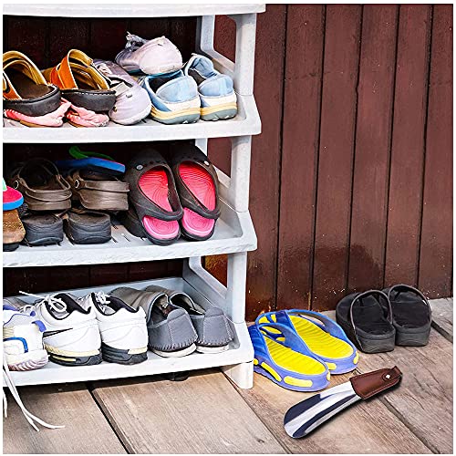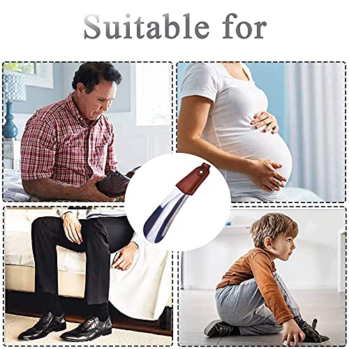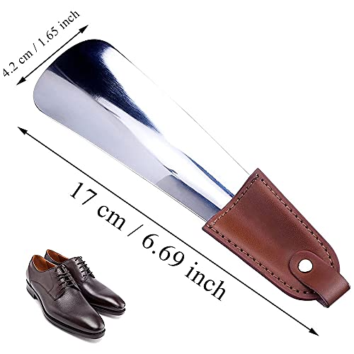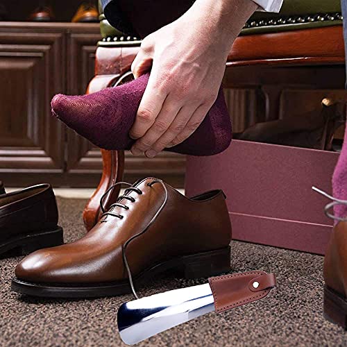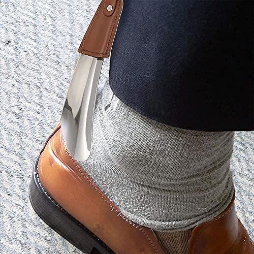 2 Pezzi Portatile Calzascarpe, Metallo Calzante, Calzascarpe in Acciaio Inossidabile, Calzascarpe da Viaggio Corto con manico in Pelle Antiscivolo per Viaggi, Anziani, Uomini, Donne, Bambini, Argento