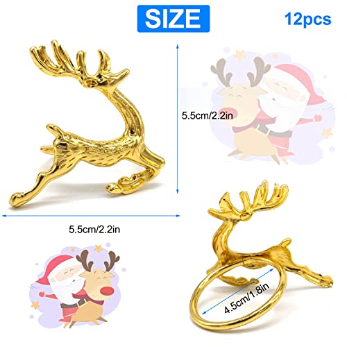 12 Pezzi Portatovaglioli Natalizi, Renna di Natale Porta Tovaglioli, Oro Portatovaglioli di Natale, Ideale per Natale, Cene, Feste, Matrimoni (Oro)