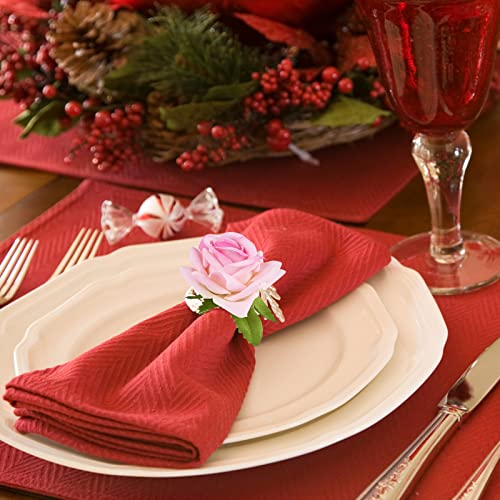 8 Pezzi Portatovagliolo Fiore Portatovagliolo Rose Rosa Artificiali Sets Anelli portatovaglioli Cordone di Tela Floreale Porta Tovaglioli Loop Fiori Portatovaglioli Cena Nozze Tavola Decorazioni