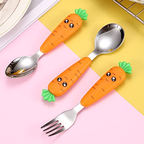 3 Pezzi Posate Bambini in Acciaio Inox, Forchetta Bambini, Posate Svezzamento, Set Posate Bambino-1 Forchetta Bambini e 1 Cucchiai Bambini e 1 raschietto per Bambino, Casa Scuola Uso