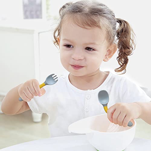 ▶ Il materiale è morbido e sicuro: Gel di silice alimentare + TPE, senza BPA. Nella nostra attrezzatura per bambini, il cucchiaio e forchetta ha una punta arrotondata morbida senza spigoli vivi.