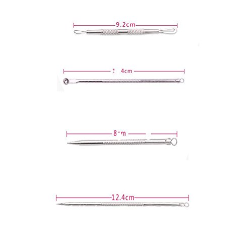 Piccolo e portatile, disinfezione può essere utilizzato più volte, risparmio sui costi.Questo set di strumenti usati per rimuovere acne e punti neri.Antibatterico in acciaio INOX.Particolarmente tagliente, fate attenzione a utilizzare e tenere fuori dalla portata dei bambini.