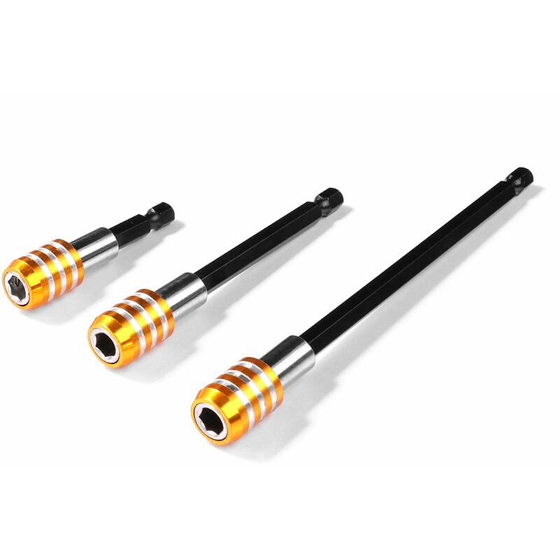 Specifiche: Materiale: acciaio al carbonio alto Quantità: 3 pezzi Lunghezza: 60mm (2.4in), 100mm (3.9in), 150mm (5.9in) gambo: 1/4 " SHANK HEX Dimensione del pacchetto: 18 * 3 * 2cm /7.1 * 1.2 * 0.8in Peso del pacchetto: 121G /4,3oz Elenco dei pacchetti: 3 * estensione bit trapano