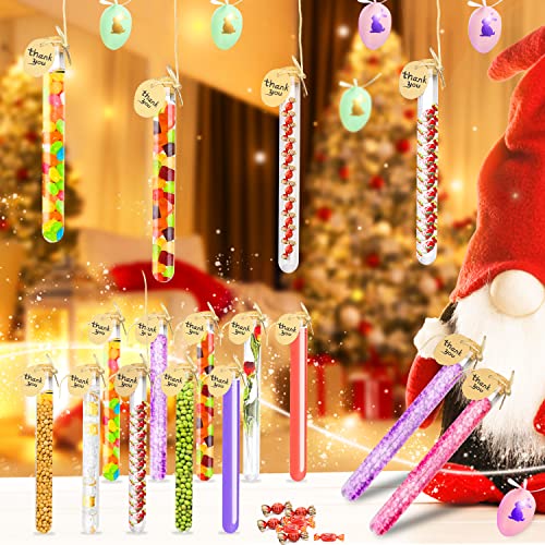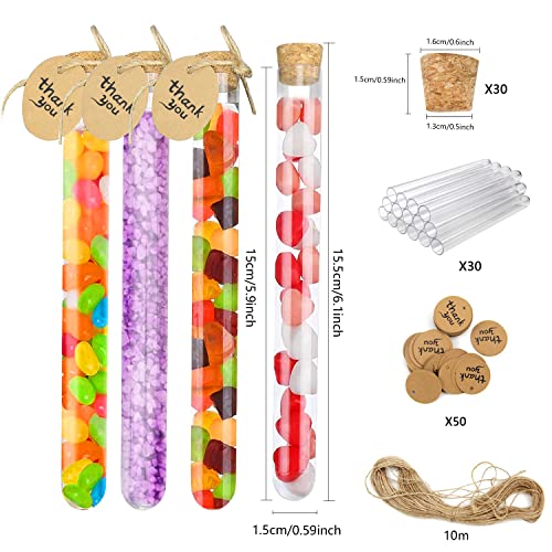 30 Pezzi Provette Plastica (150x16mm) 20ml + 50 Pezzi Etichette Kraft + 10m Spago di Iuta per Dolci Caramelle fai da te Spezie Liquidi Semi
