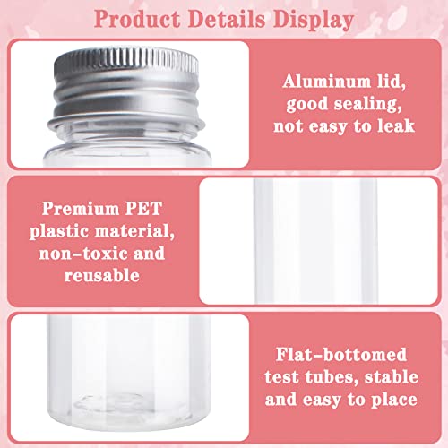 Materiale di Alta Qualità: Le nostre provetta in plastica trasparente piatta sono realizzate in PET di alta qualità e i tappi delle bottiglie sono in alluminio. Non solo, le nostre provette portaconfetti plastica possono contenere anche liquidi, polveri e solidi. Rispetto alle fragili bottiglie di vetro, sono ecologiche, durevoli, non tossiche, inodori, trasparenti, resistenti all'usura, non facili da rompere, durevoli e riutilizzabili. Inoltre, si possono pulire facilmente.