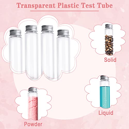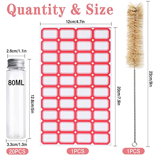 20 Pezzi Provette Plastica Trasparenti Riutilizzabili 80ml Provette Plastica Tappo a Vite Provette Plastica con Tappo con Etichetta Adesiva e Spazzola per la Pulizia per Dolciumi Accessori Cosmetici