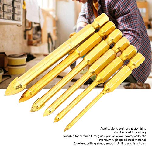 6 Pezzi Punta Vetro Punte Trapano per Piastrelle, Vetro, Calcestruzzo, Mattoni, Legno E Plastica, Punta Triangolare 3mm 4mm 5mm 6mm 8mm 10mm
