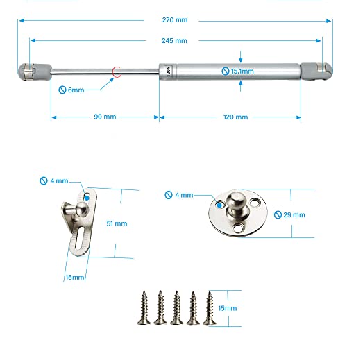 2 pezzi - Puntali a gas, molle a gas, supporto di sollevamento, scosse di gas, blocco coperchio, supporto coperchio Soft Close, innesti di sicurezza puntali molle ammortizzatori¡ (120N / 26lb / 12kg)