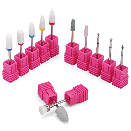 12 Pezzi Punte Fresa Unghie, Include Diamante/Silicone/Spazzola/Punta Punte per Trapano per Unghie 3/32"(2.35 mm), in Confezione Singola per Lucidare le Unghie, Pulire le Cuticole, Pedicure Manicure